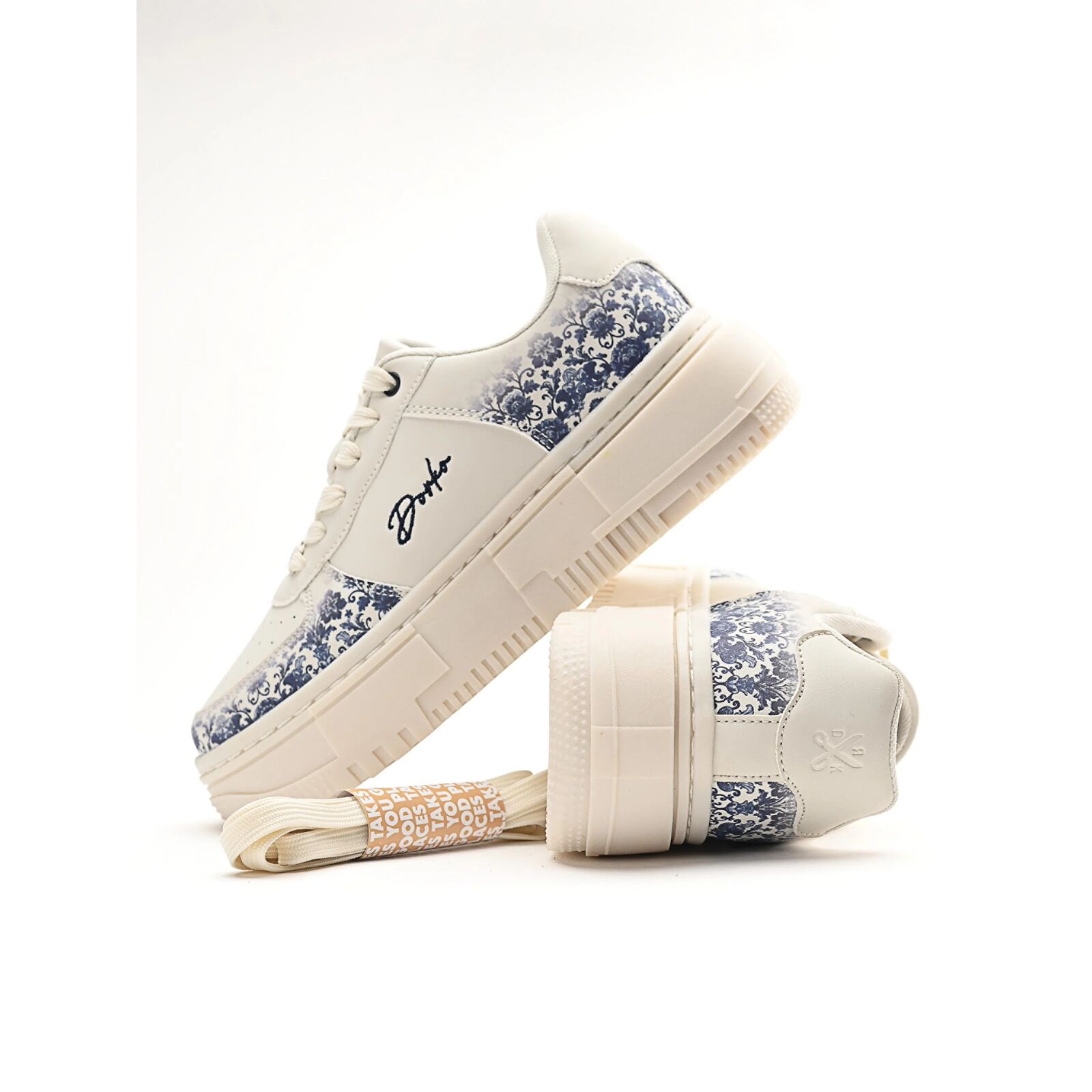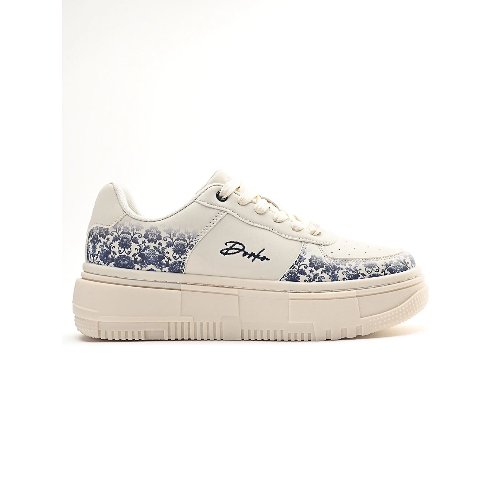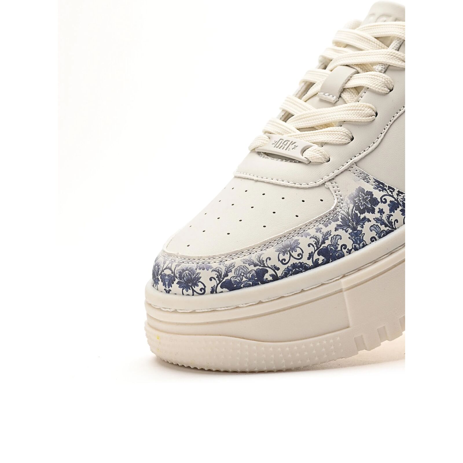 Kecses, akár a porcelán. - Fehér alapon kék virág a BOMBSHELL BLOOM olyan, mint egy életre kelt porcelán. A pixeles mintázatú TPR platform markáns hatást kelt, de a kék virágdíszítés finom eleganciával ellensúlyozza azt. A szépség persze nem minden: a perforált részeletek biztosítják a szellõzést, a saroknál található párnázás pedig a kényelemért felel. A BOMBSHELL BLOOM sneaker a bizonyíték rá, hogy az ellentétek nemcsak vonzzák egymást, hanem jól is mutatnak együtt.