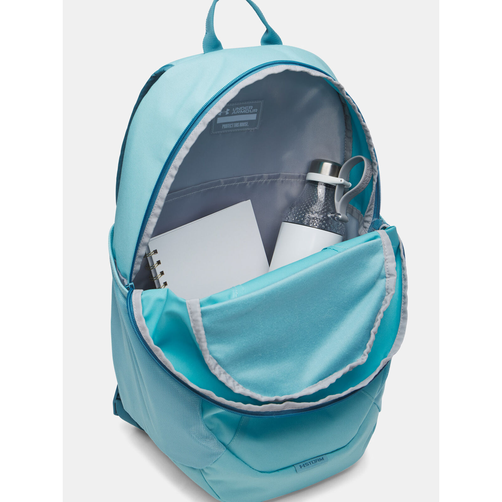 Az UA Storm vízlepergetõ technológia szárazon tartja a holmidat.Puha bélés laptoptartó - akár 15"-os laptop vagy hasonló méret notebook is elfér benne.2 oldalsó zseb vizespalackok számára.Tartós, PU bevonatú alsó panel.
