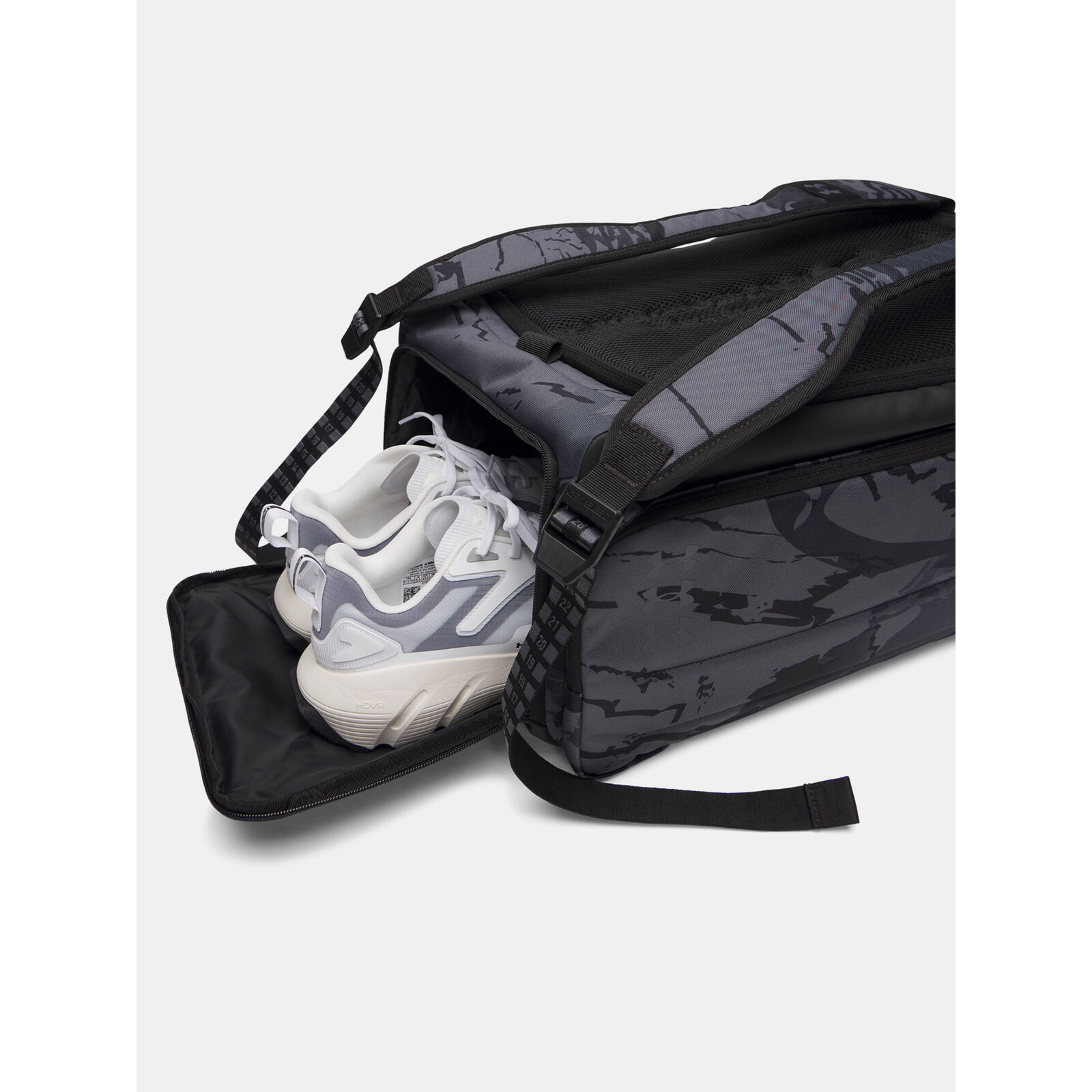 Hátizsákként vagy táskaként funkcionál levehetõ pánttal.A víztaszító UA Storm technológia szárazon tartja a holmidat.A LEVELED pántrendszer segít biztosítani a pántok egyenletes beállítását a kiegyensúlyozott súlyelosztás érdekében.Nagy fõ rekesz belsõ szervezéssel a laptop, az értéktárgyak és egyéb dolgok szállításához.Laptop tartó puha béléssel - akár 15"-os laptopot is képes tárolni.Belsõ zseb a szennyes ruháknak/cipõknek az alján.Vizespalack tartó és 2 külsõ zseb az értéktárgyaknak.Rögzítési pont, amelyhez bármilyen karabineres táskát rögzíthetsz a könny szállítás érdekében.Felsõ fogantyú.Méretek teljes állapotban: 40cm Sz x 28cm M x 55cm M.rtartalom: 40 L.