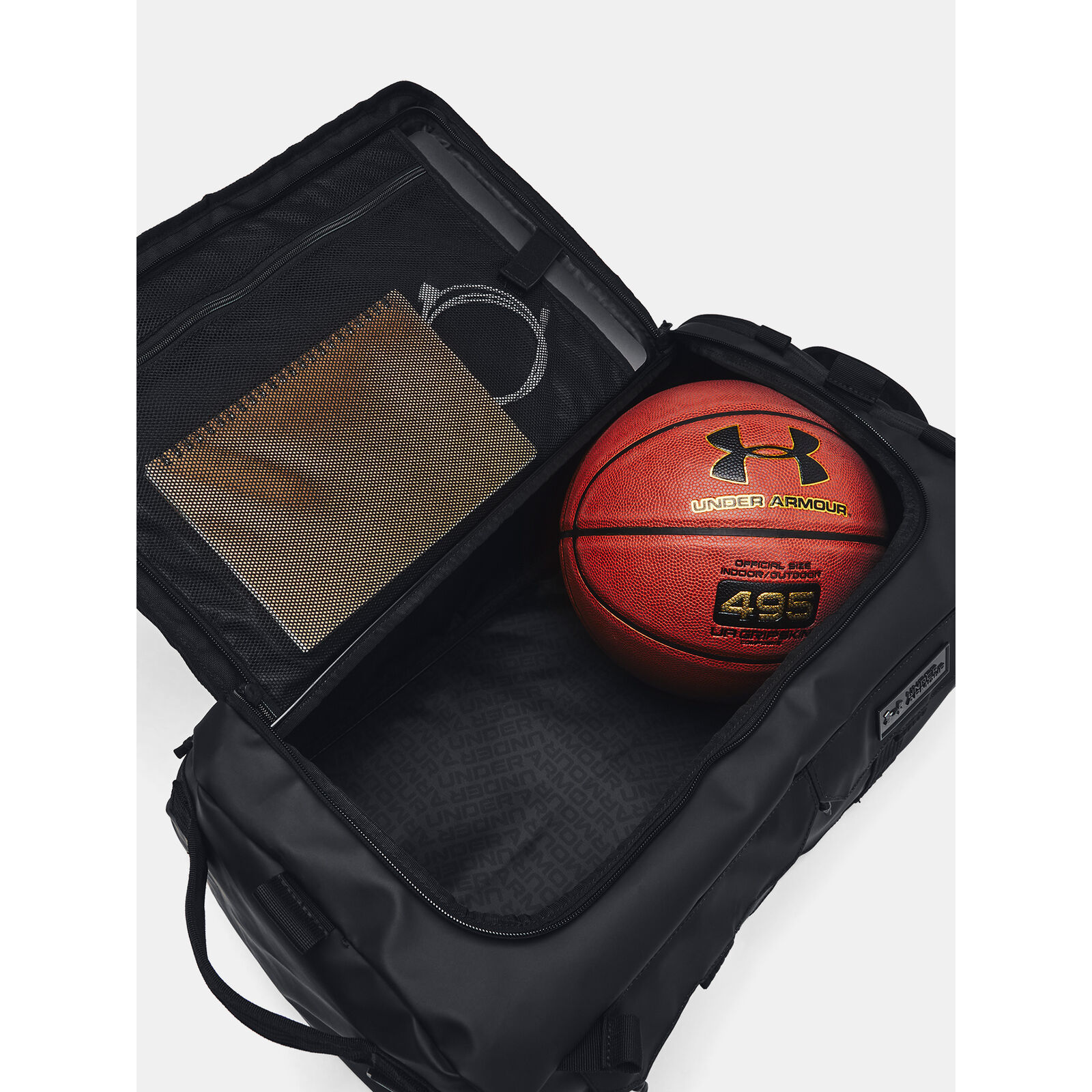 A vízlepergetõ UA Storm technológia szárazon tartja a dolgaidat.Hátizsákként és táskaként is funkcionál, állítható vállpántokkal és fogantyúkkal.LEVELED rendszer vállpántok az egyszer, kiegyensúlyozott súlyelosztás beállításához.Érintésre puha felsõ anyagréteg a nagyobb tartósság érdekében.Puha bélés laptoptartó akár 15"-os laptop tárolására is alkalmas.A fõ rekesz bõvíthetõ, és van egy belsõ cipõtartó zsebe.Biztonságos cipzár és zsebek fedéllel az elülsõ oldalon az értéktárgyak számára.Bordázott nylon Molle hevederek rögzítési pontokkal.Méretek: szélesség: 33cm, magasság: 24cm, hosszúság: 53cm.