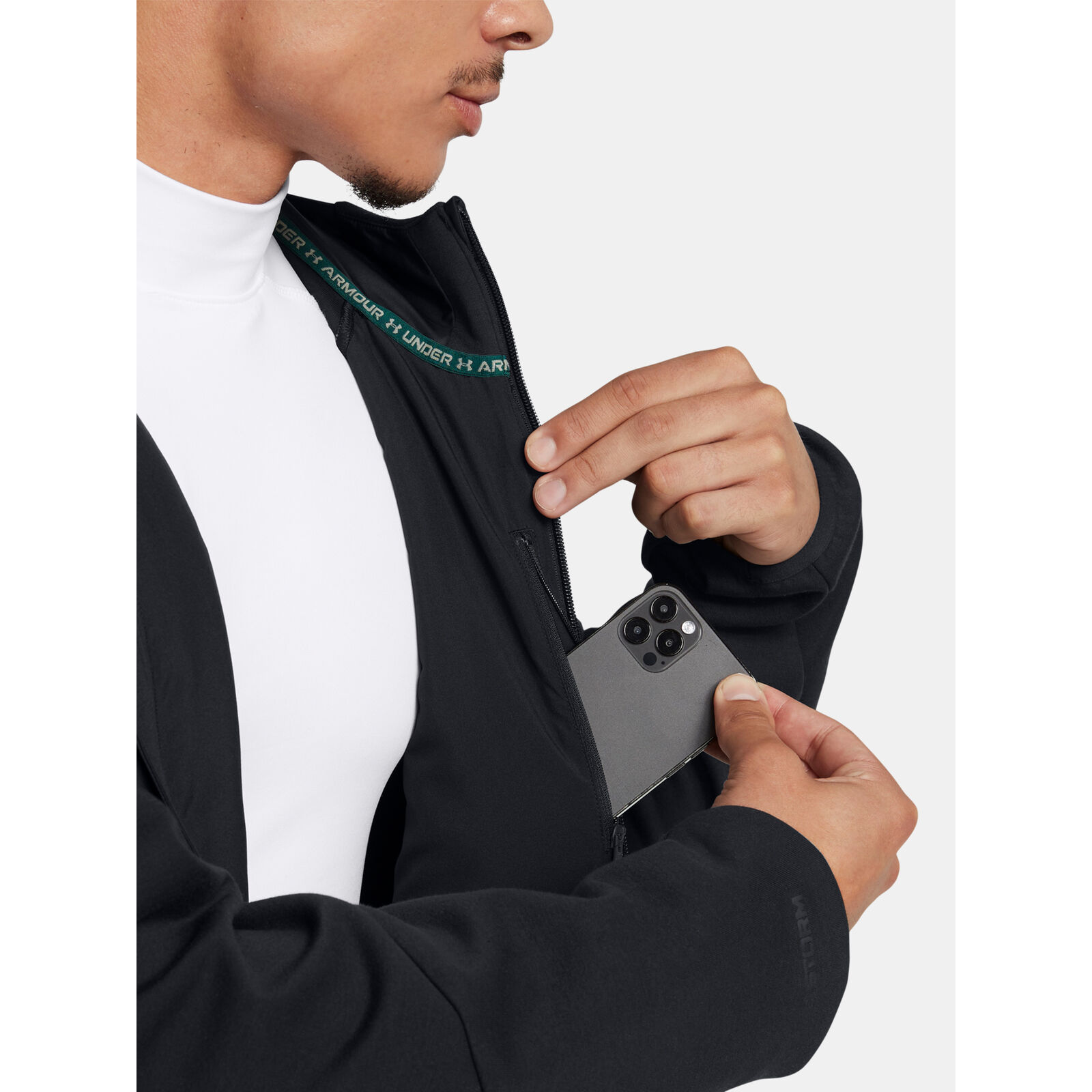 Az UA Storm technológia taszítja a vizet a légáteresztõ képesség csökkenése nélkül.A puha, légáteresztõ, dupla kötés anyag további tömeg nélkül biztosít meleget a kiváló kényelem és mozgékonyság érdekében.Stratégiai 80g szintetikus szigetelés a nagyobb melegért ott, ahol szükséged van rá.Biztonságos cipzáras kézzsebek puha trikóbéléssel, amely melegen tartja a kezeket, belsõ cipzáras mellzseb.Szegély a kapucnin, a mandzsettákon és az alsó szegélyen a szilárd illeszkedésért.Fluormentes víztaszító bevonatot használ.
