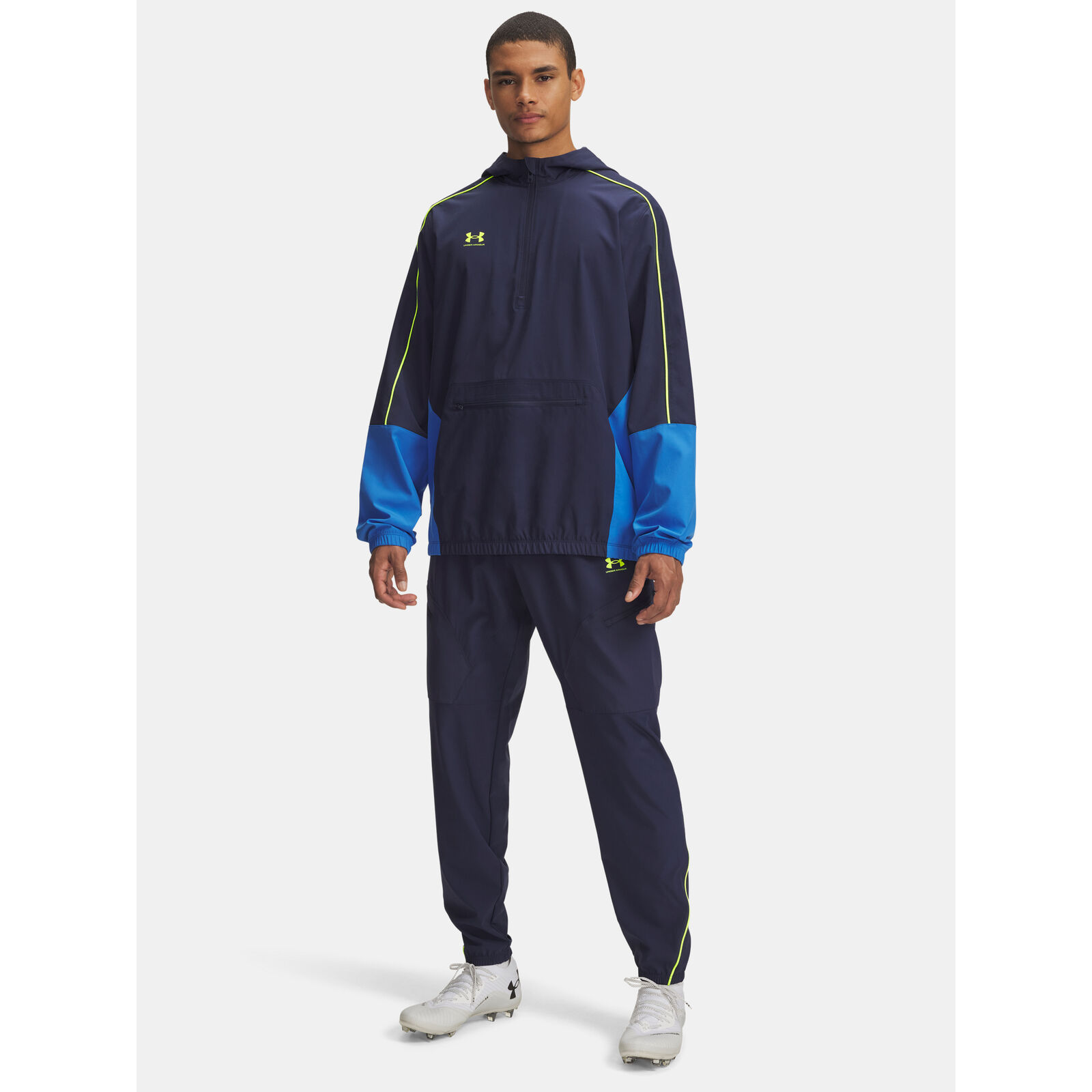 Az UA Storm technológia taszítja a vizet a légáteresztés csökkentése nélkül.A könny, rugalmas szövet kényelmet és tartósságot biztosít.Rugalmas derékrész belsõ húzózsinórral.Nyitott zsebek a kézen és biztonságos elülsõ cipzáras zsebek.Rugalmas mandzsetták.