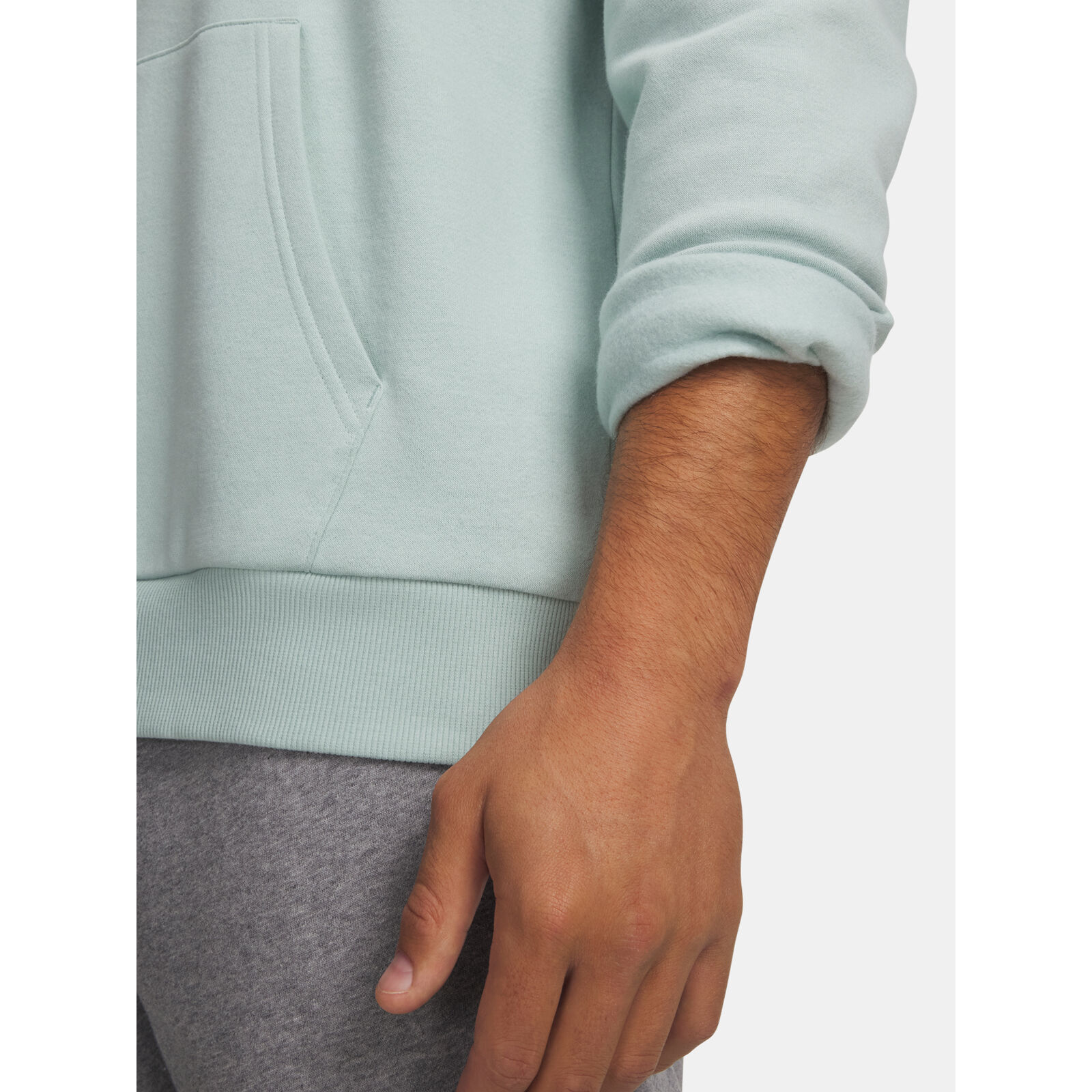 Rendkívül puha pamut fleece, kefélt belsõ oldallal a nagyobb melegért.Elülsõ kenguru zseb.Bordázott mandzsetták és alsó szegély.