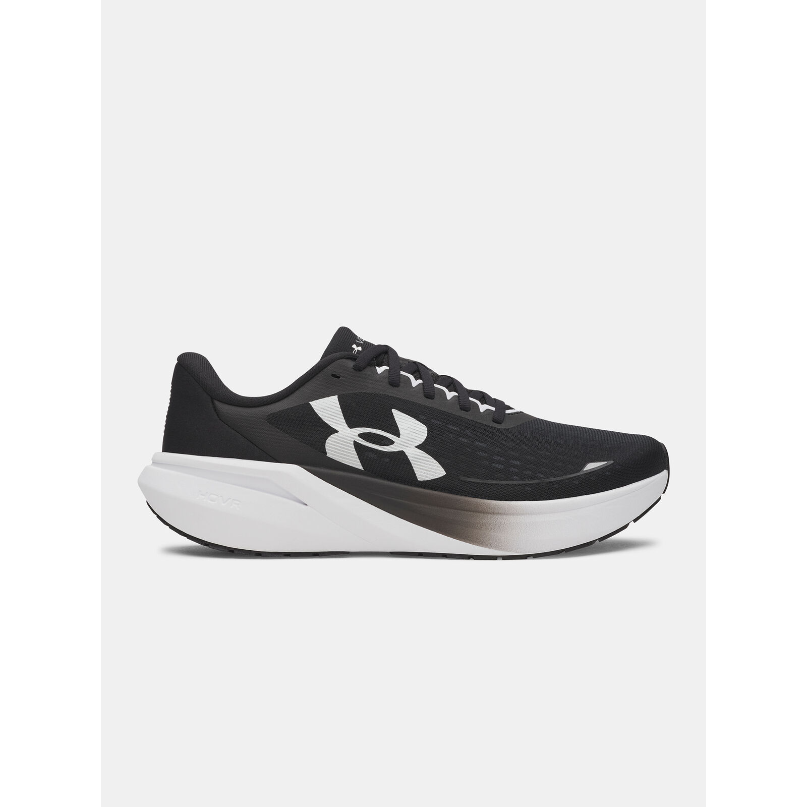 Az áttetszõ mono hálós felsõrész könny, légáteresztõ és feltárja a belsõ megerõsítést a lábközépnél és az elülsõ részen.Hagyományos gallér és nyelv konstrukció a legjobb illeszkedésért.Az UA HOVR technológia csökkenti az ütéseket, visszaadja az energiát és segít elõrejutni.Teljes felület gumitalp a tapadásért és a tartósságért.