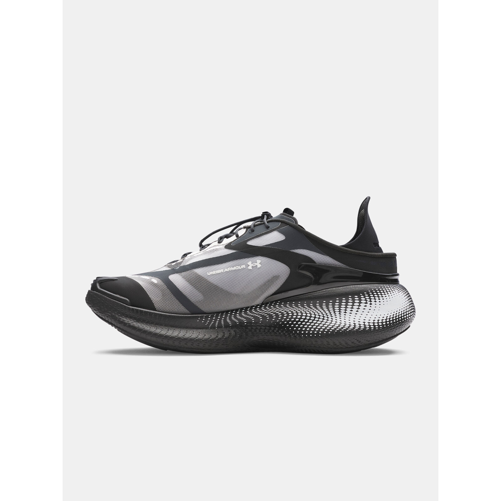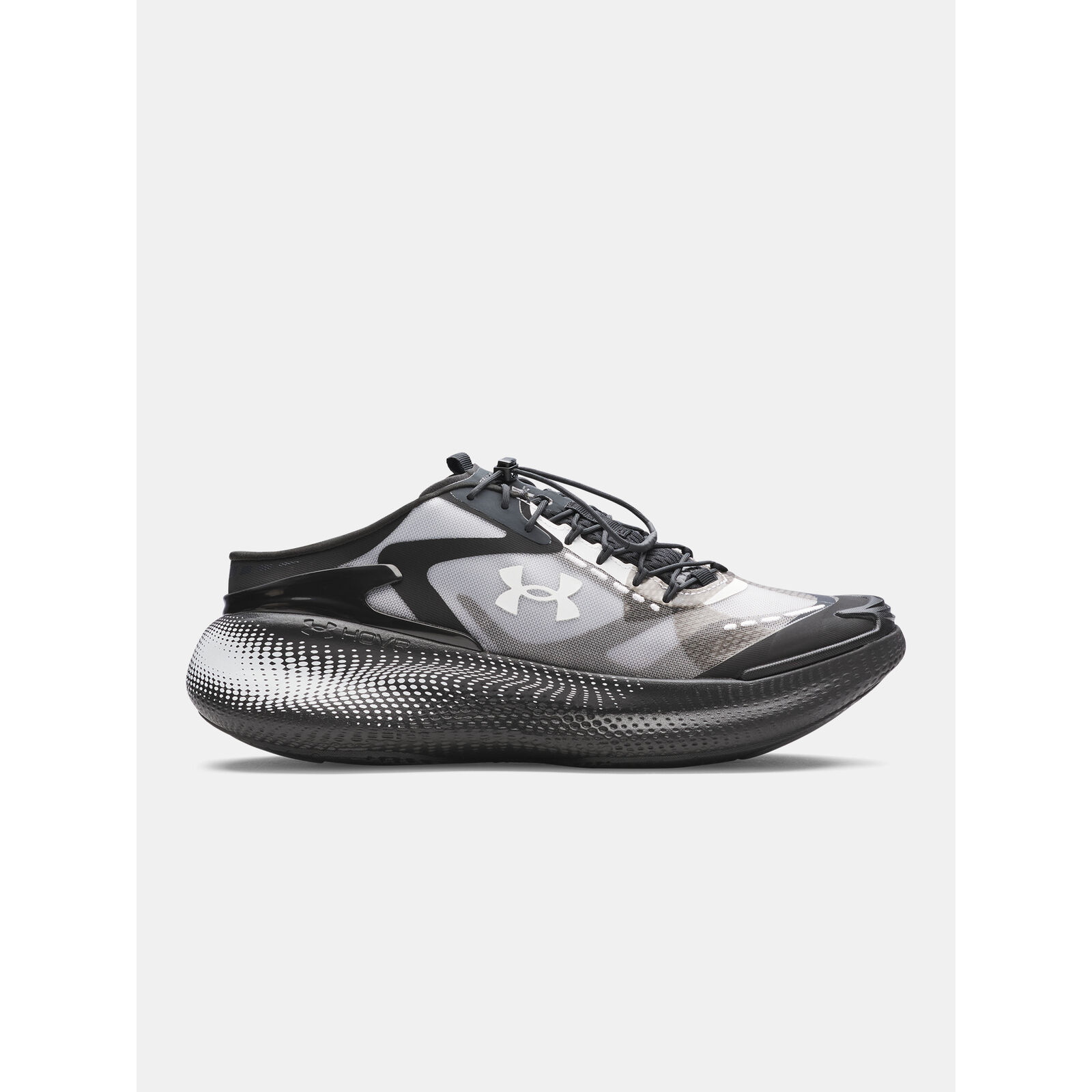 Többréteg, áttetszõ felsõrész lélegzõ monofil hálóval.Aszimmetrikus nyelv- és fzõrendszer a gyors illeszkedésért.Gumírozott orr a nagyobb tartósságért.A UA HOVR érzékeny párnázása csökkenti az ütést, visszaadja az energiát és segít elõrejutni.A konvertibilis UA SlipSpeed sarok lehetõvé teszi a könny átmenetet az edzési üzemmódból a regenerációs üzemmódba.Gumi külsõ talp a tapadásért bármilyen felületen.